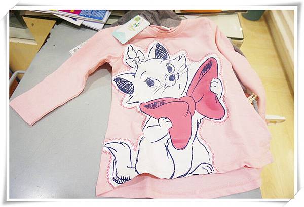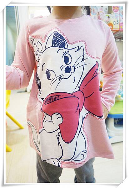 粉色貓咪長袖漫畫T恤做為當天戰利品