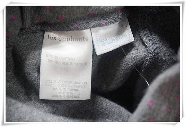褲子的裡面有車標,註明衣服成份,