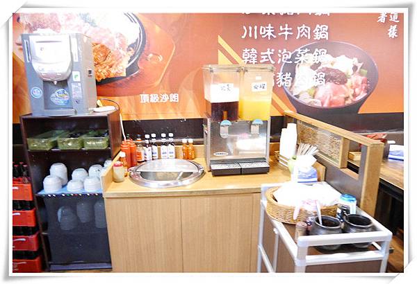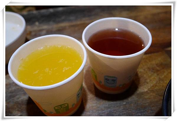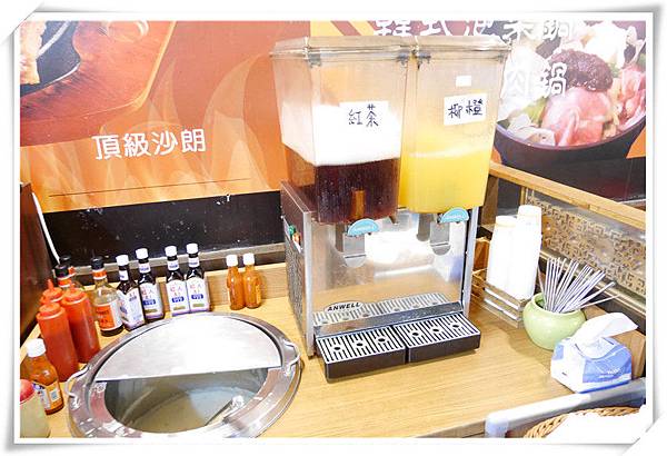 倒好了湯再來倒飲料,這邊有紅茶和柳橙汁