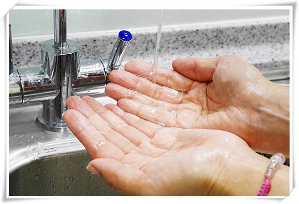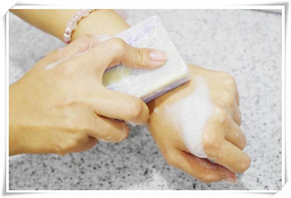 先將手沾濕,接著將香皂放在手中搓揉幾下