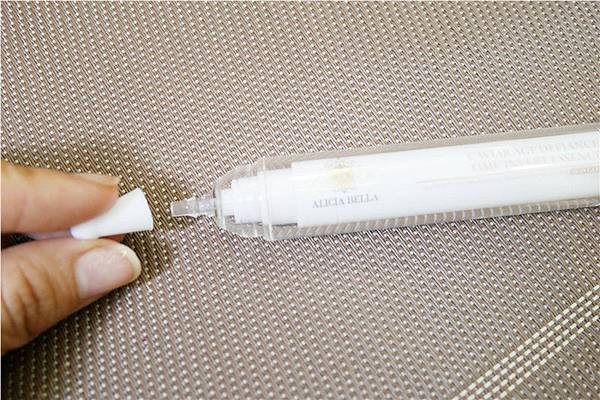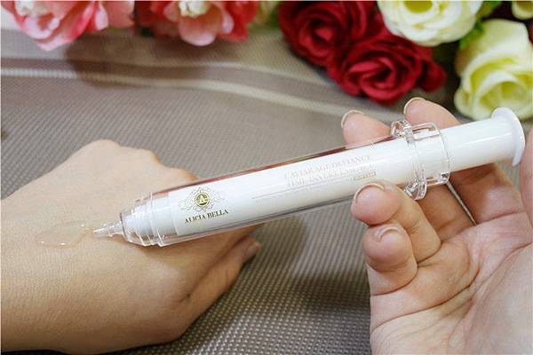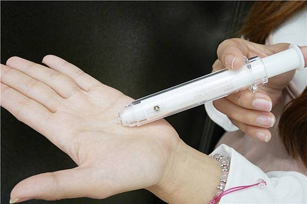 拿出來是白色針筒狀類似自動鉛筆用法。