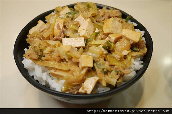 蓋飯的材料是選用當季蔬菜、肉、加上豆干
