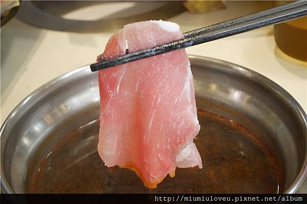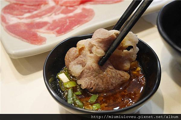 自己喜愛的獨到口味,再沾涮好的梅花豬