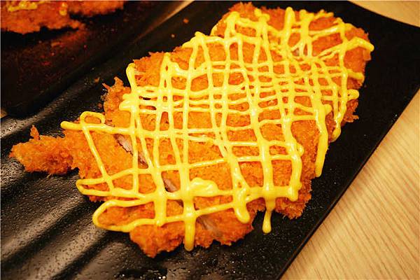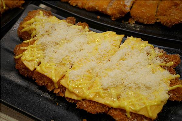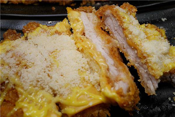 起司豬排,厚實的豬排被包覆在酥脆