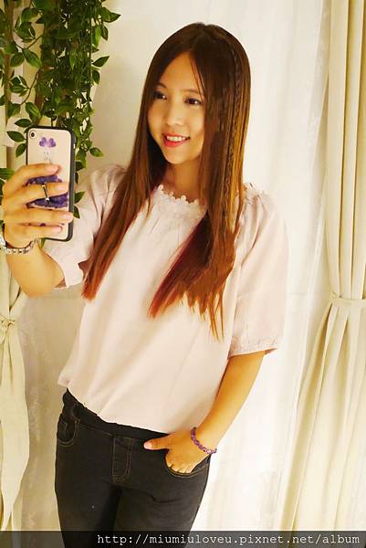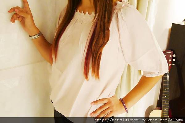 的上衣,妙妙琳喜歡這樣溫柔低調的粉紅色,