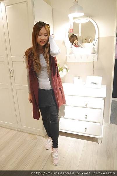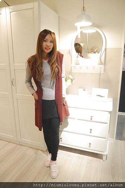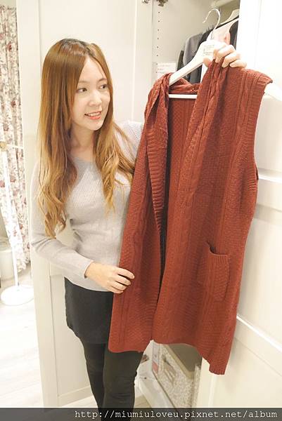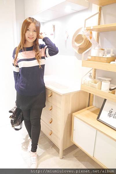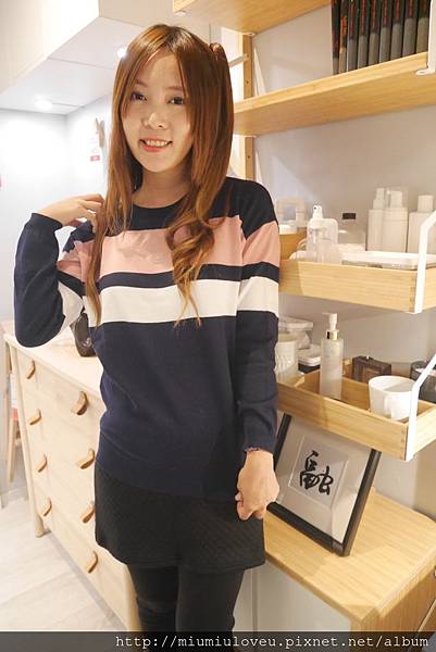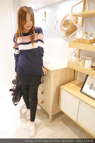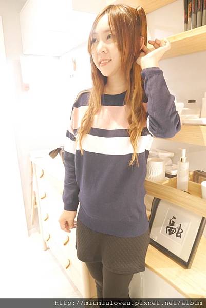 妙妙琳很愛深藍色的毛衣,看起來修身