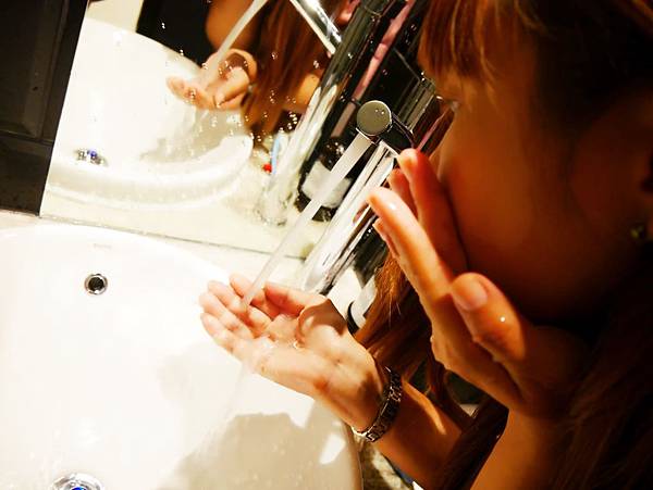 用清水輕潑就很省力的洗乾淨臉,