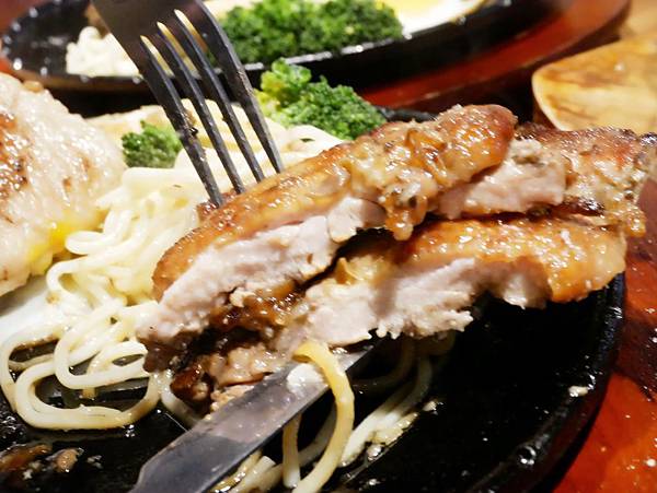 軟嫩多汁的雞腿排搭配義大利麵粉好吃