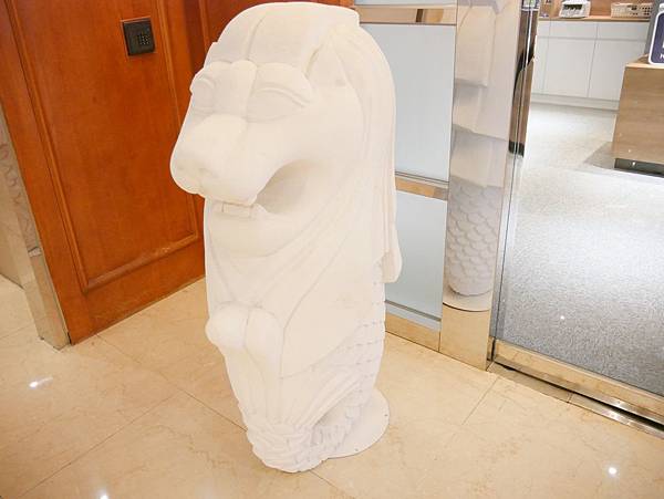 在門口遠遠就看到獅頭魚身雕像,