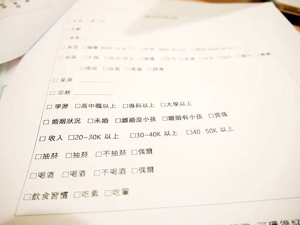 表格從興趣到本身的習慣等等都有