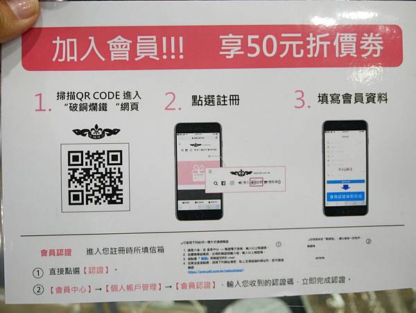 只要新加入會員就可以得到五十元折價券,