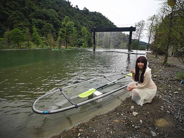 一旁的透明小船是可以真的上去划的,