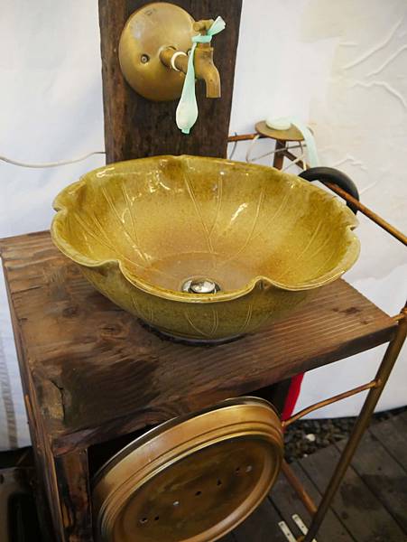 門口有很可愛的洗手區,銅色的