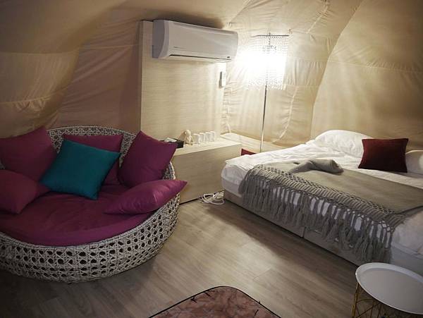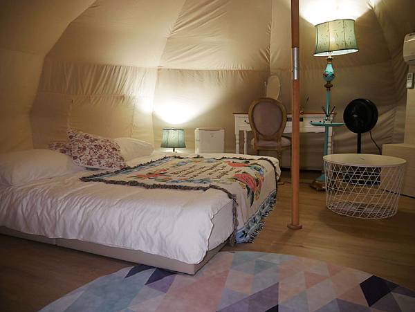 白色帳篷的內部陳設非常夢幻漂亮,
