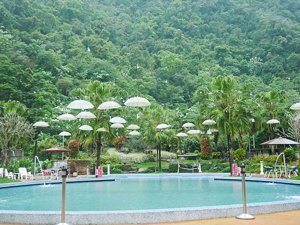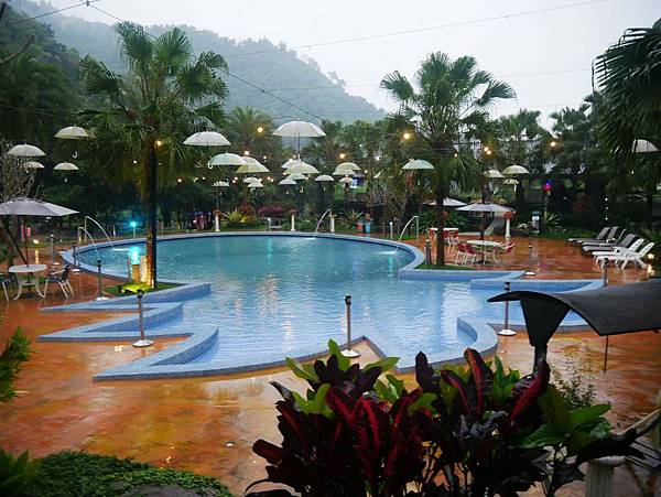 游池上還掛著很多網美風的小雨傘,