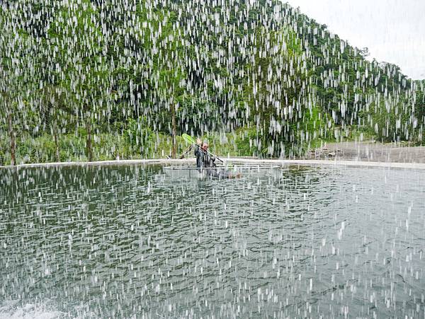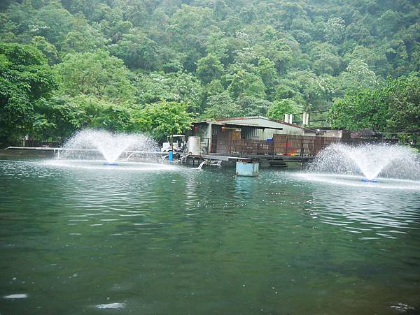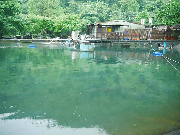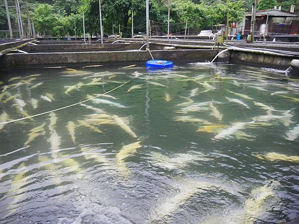 不只有魚苗的飼食區,外頭的池塘內還有