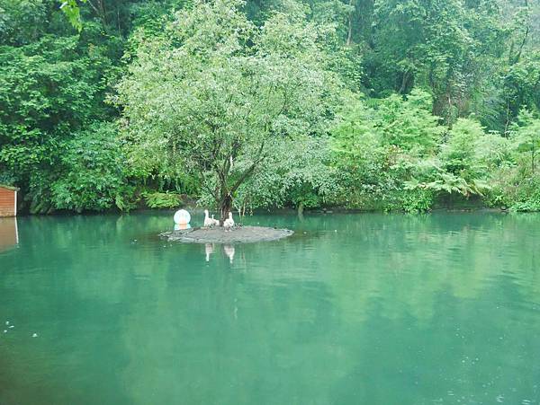 可愛的大池塘區有好幾隻白色小鴨,