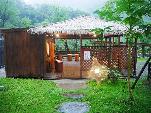草屋頂的木屋有好幾間淋浴廁所可以用