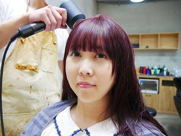 接著設計師幫妙妙琳使用Dyson來吹頭髮,