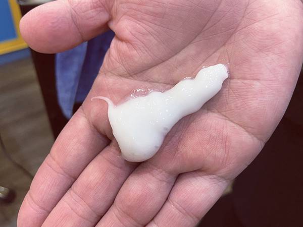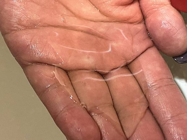 第一遍先把洗髮精倒在手掌心並搓揉起泡