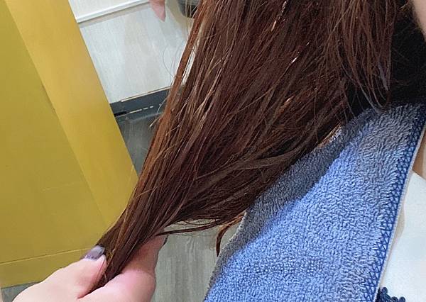 頭髮清洗完畢後可以先將頭髮擦乾,