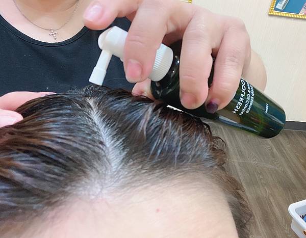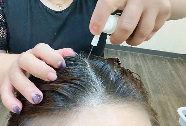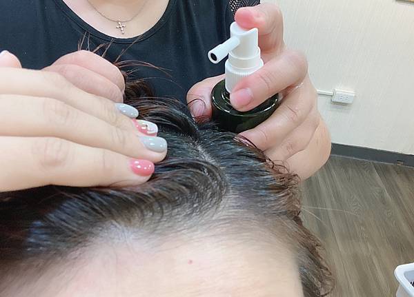 頭皮水需噴頭抵住頭皮噴灑較好喔!