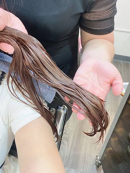 同時也摸的到髮絲細滑又柔順的質地。