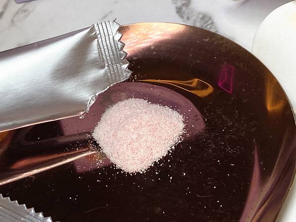 倒出來是這樣淺粉紅色的細緻粉末顆粒。