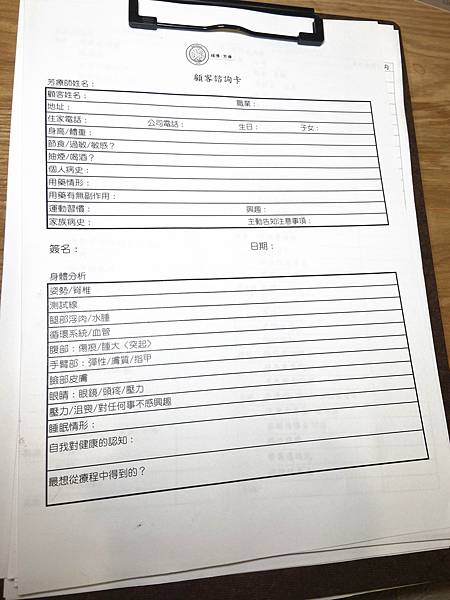 坐下來喝杯茶放鬆一下,填寫顧客諮詢卡