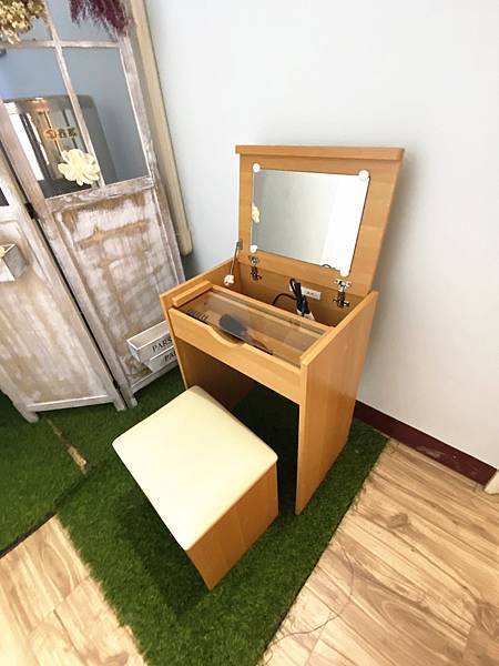 可以利用梳妝區的吹風機和梳子按摩