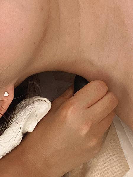 最後再用熱石來放鬆肩頸和胸前,