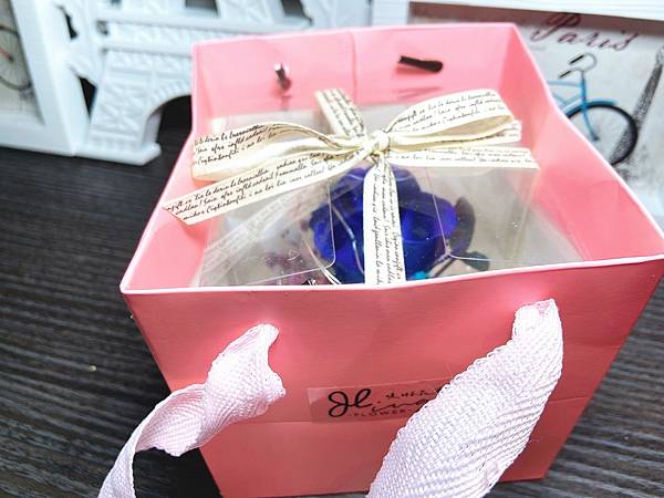 玻璃花盅外有透明的外盒還綁上緞帶,