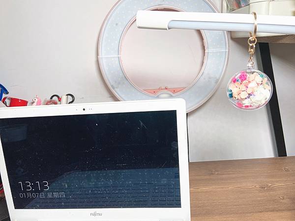 永生花鑰匙圈就掛在我的工作桌前面吧~