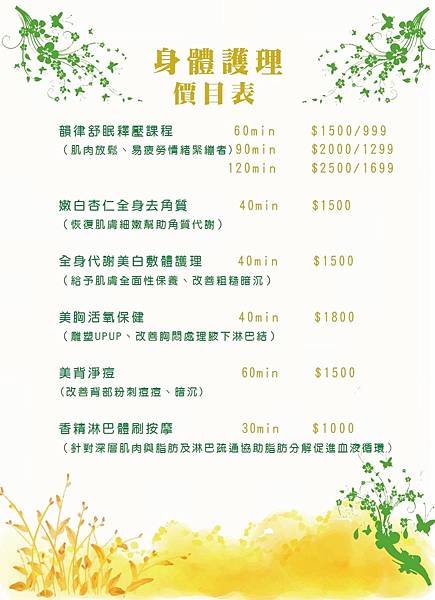 或是身體的服務,接著課程也有細分