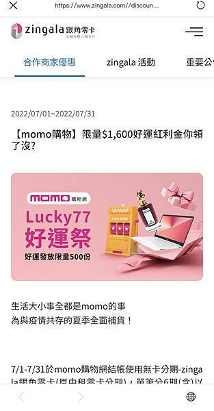 這次在zingala銀角零卡的網站