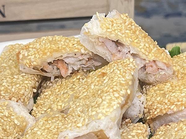 再將餅皮烤的香酥,表層灑上芝麻