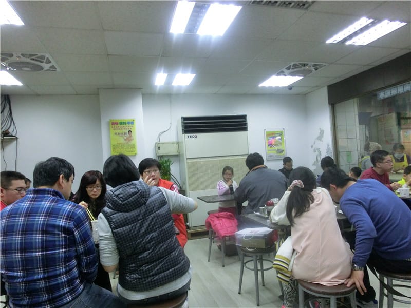 這家阿財鍋貼.水餃可是汐止人必吃的餐點, 每每到用餐時間不必是假日都能高朋滿座, 就連外帶都可以等上十幾分甚至最久半小時。 門口就坐著幾位員工不停手的包水餃, 也有幾位不停的煮水餃和打…